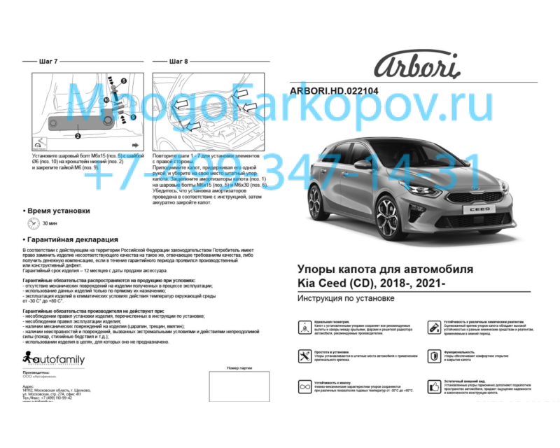 Амортизатор (упор) капота на Kia Ceed ARBORI.HD.022104