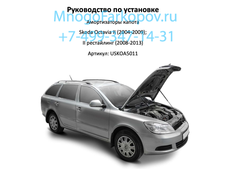 Амортизаторы (газовые упоры) капота на Шкода Октавия А5 с 2004 по 2013 год выпуска, от отечественного производителя AEngineering. Гарантия на изделие 3 года. Устанавливается в штатные места и не требует сверления капота или крыльев автомобиля. В комплекте 1 амортизатор и крепежи. Процесс установки на автомобиль обычно занимает 10-15 минут. Внимание! Перед установкой амортизаторы нужно прокачать, упереть в пол и всем весом качнуть 3-5 раз, до ровного хода изделия. Соблюдайте инструкцию по установке, и у Вас после установки не будет зазоров. Заказать упоры на Октавию А5 можно не выходя из дома - по телефону или через корзину интернет-магазина.