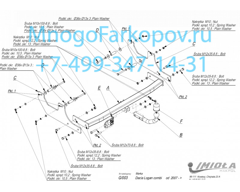Фаркоп на ВАЗ Ларгус , Lada Largus G/003
