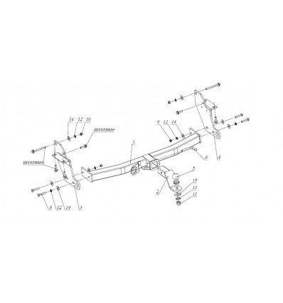 | Место крепления на автомобиле: | Лонжероны (места крепления предусмотрены изготовителем автомобиля). |