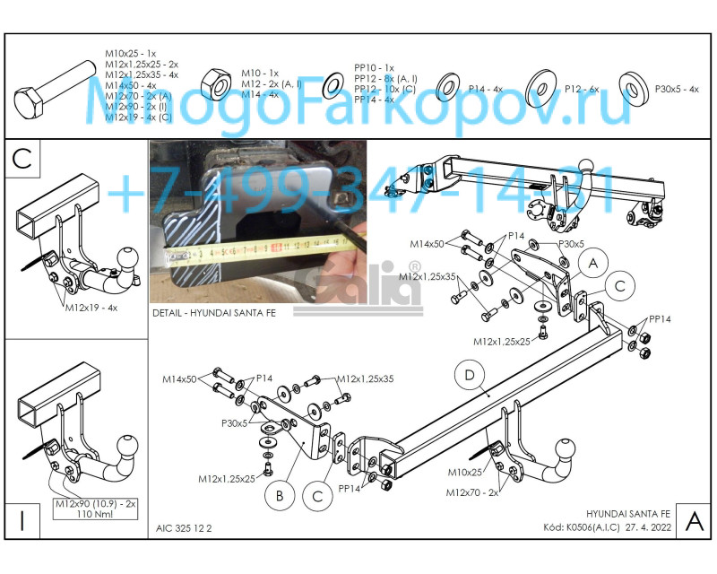 Новое Фаркоп на Hyundai Santa Fe K050C Полный размер