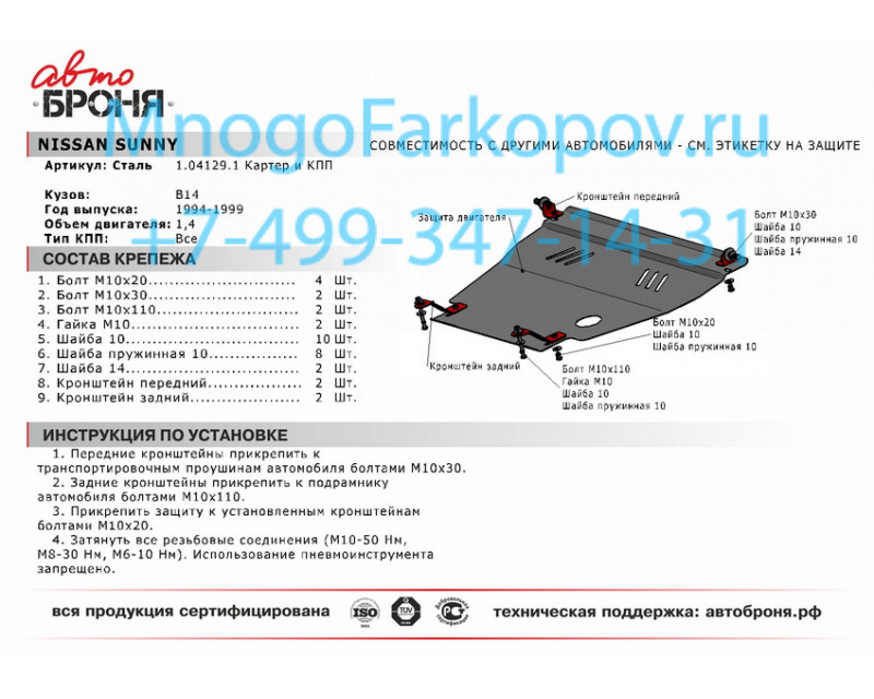 Защита картера Nissan Primera P11 111.04129.1 Полный размер